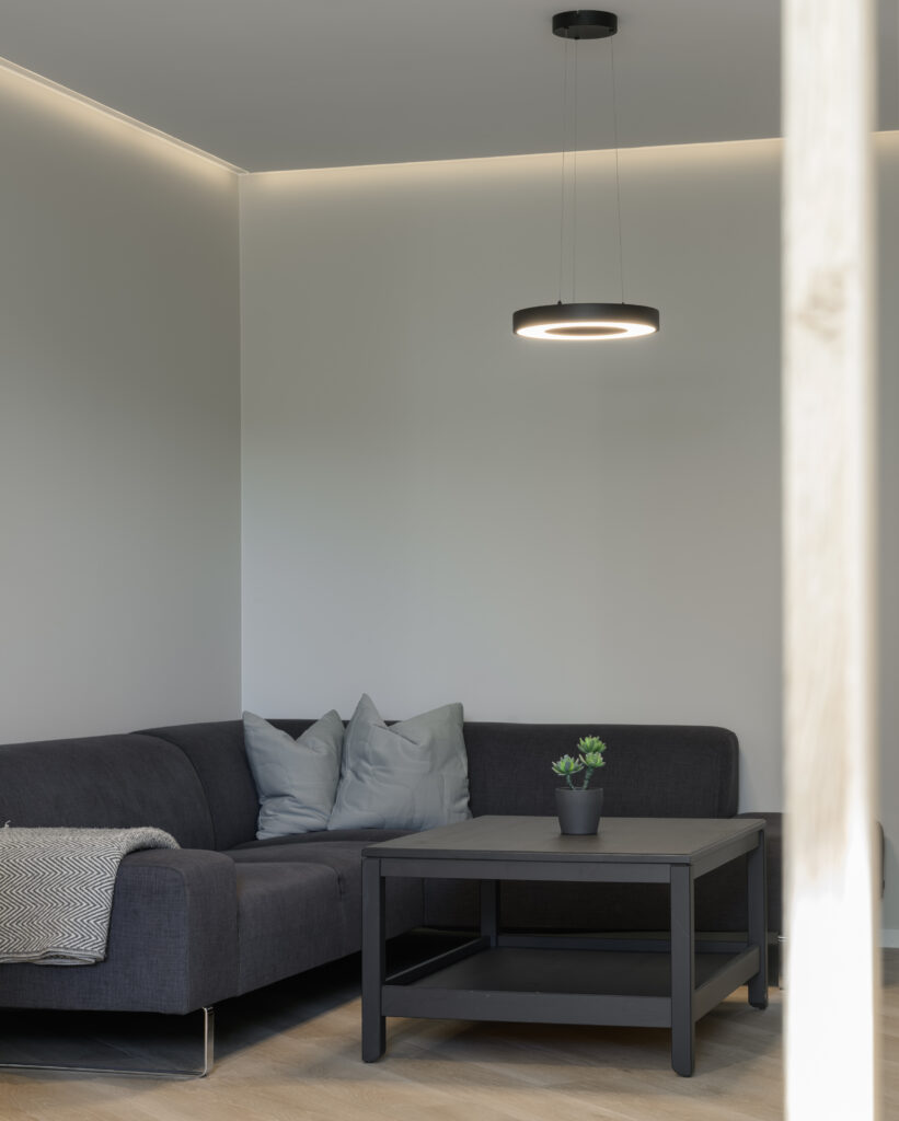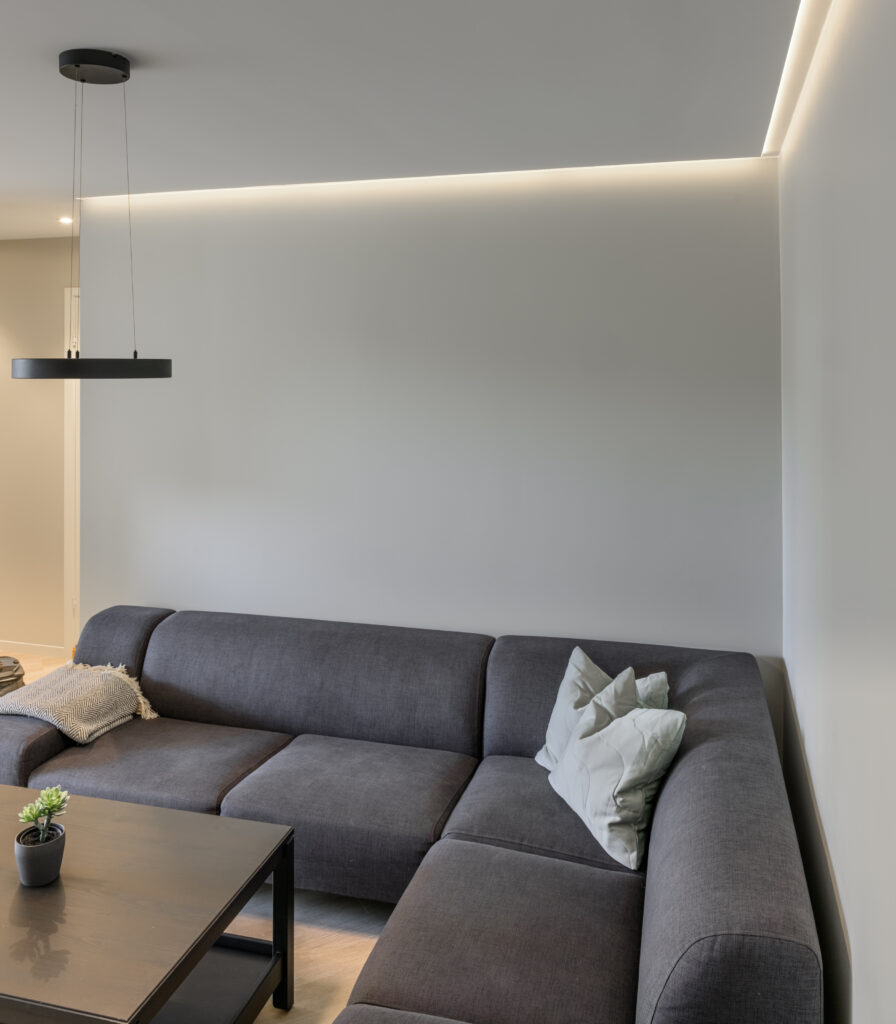 Vi installerte ny elektrisk installasjon og LED-strip belysning i ny kjellerleilighet for å få følelsen av en lys leilighet selv om det ikke var så mange vinduer her.
